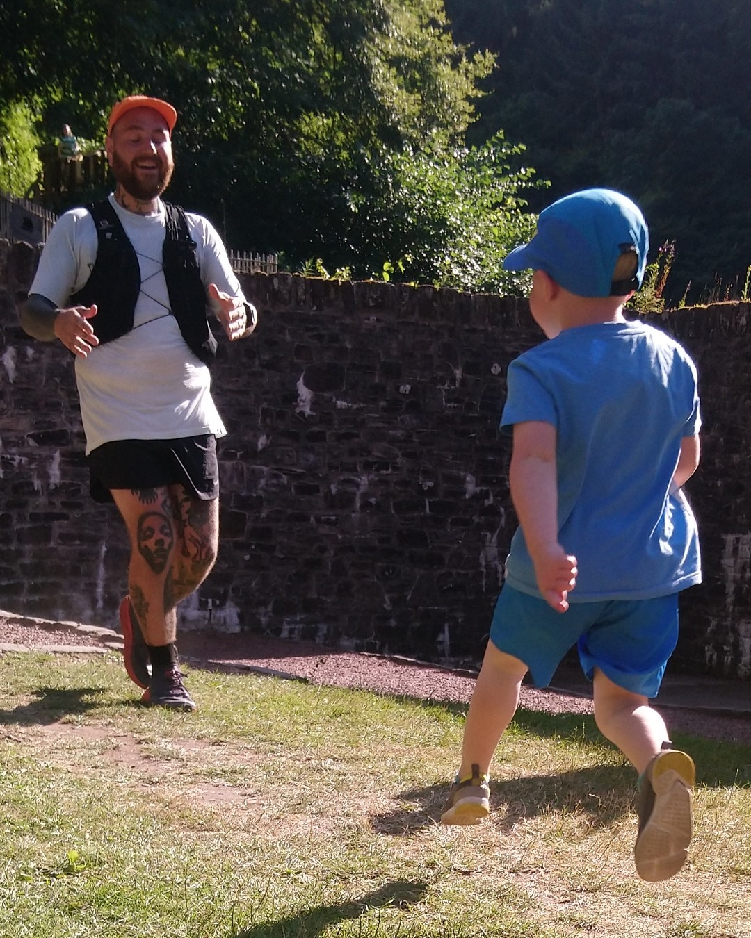 Last year’s virtual organisers, The Run Bible, were represented by Dan, who was accompanied for the first 20 miles by Acorn Trails’ Alex. By this stage Dan had caught up with Fraser Samson running the full thing to fulfil his sponsorship pledges. They would complete a section together before Dan’s ultra and marathon fitness allowed him to push on a bit quicker into the heat, followed by Fraser’s best wishes. They would see each again at the New Lanark finish line.