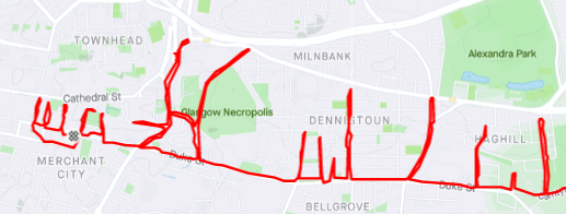 Others without the assistance of a hilly backdrop, got inventive with finding a good elevation profile. Arthur Duggan used every bump and slope during his Glasgow run to add up some metres.