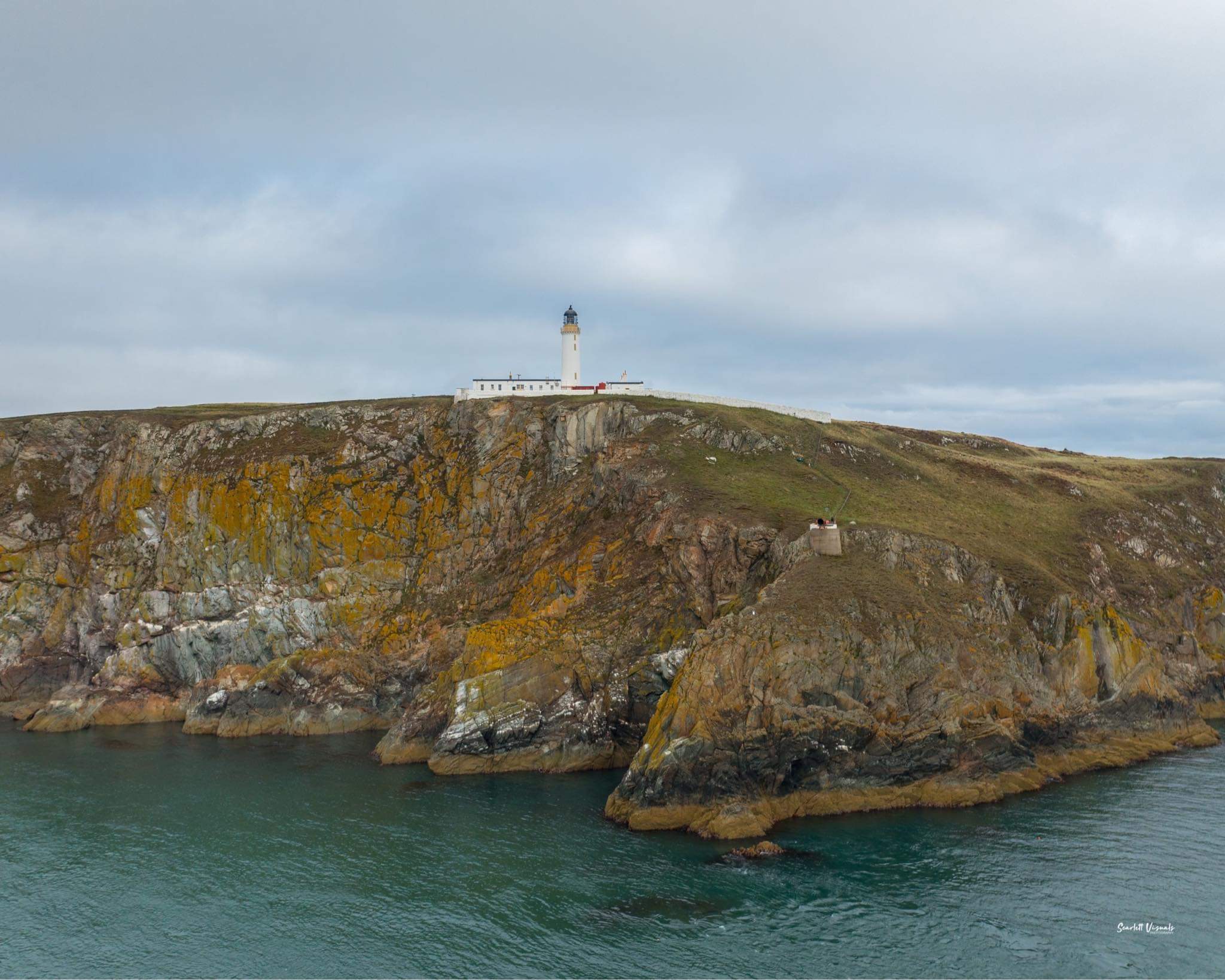 We gave the fog 15 minutes, it cleared enough for one of our runners’ young boy to press the button. The horn resonated out to sea and runners set off on their 26 mile journey north to Stranraer. The fickleness of the fog was further highlighted by photos taken by Scarlet Visuals, 15 minutes after race start, of dolphins frolicking in the sea within site of the start-line!