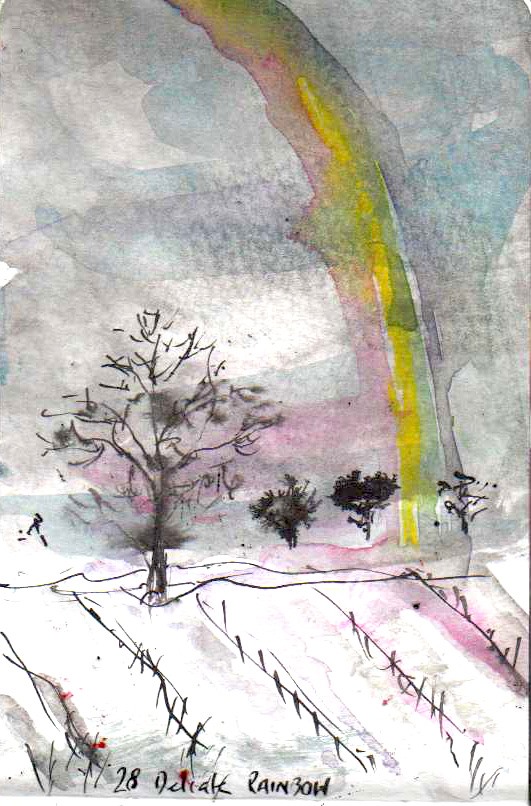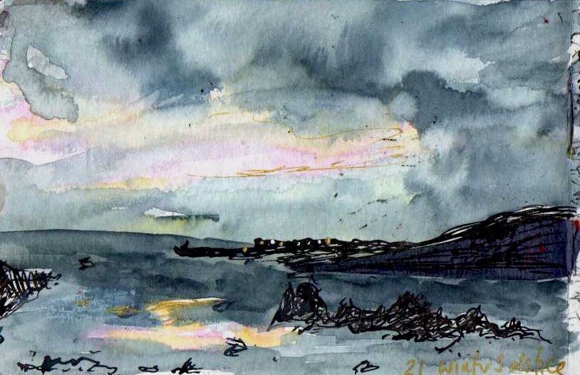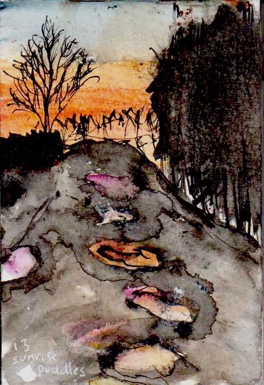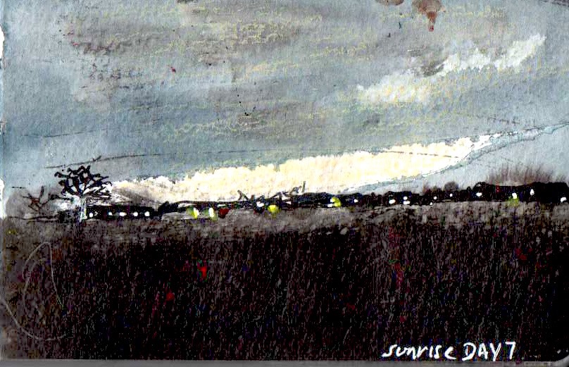 As an artist and printmaker, my work is heavily influenced by my surroundings. I like to go out and sketch as often as possible, and these sketches often find their way into my work. During the first lockdown I completed a 40 day sketch challenge, where I used my hour to get out and on my bike or on foot and do a quick sketch. During the Marcothon I didn’t want to stop for 10 minutes to draw, so I decided to sketch from memory. I tried to remember something significant about the run – it could be anything from a couple of starlings telling me off, to icy puddles or a spectacular pink sky. It really changed the focus of my run – I wasn’t thinking about how tired or slow I was and I stopped listening to music on my phone. I really paid attention.