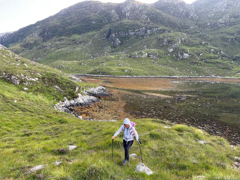 I had 5 days of dry and sunny hot weather in Scotland. However this “trail” is never dry. You cross so many rivers, waterfalls, bogs, etc. your feet will be wet all day, all night. I did consider waterproof socks before the trip but I don’t think it would have helped. Water would likely to have gone in from the top or eventually found a way in and then you are left with water that can’t escape out of socks.