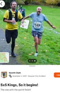 Derek Miller of Carluke JogScotland has been the first arrival at so many Sx5 events over the years we renamed him. His club mates at Carluke JS refuse to car share with him as he leaves so early! It will take an early bird to beat Derek to the worms!